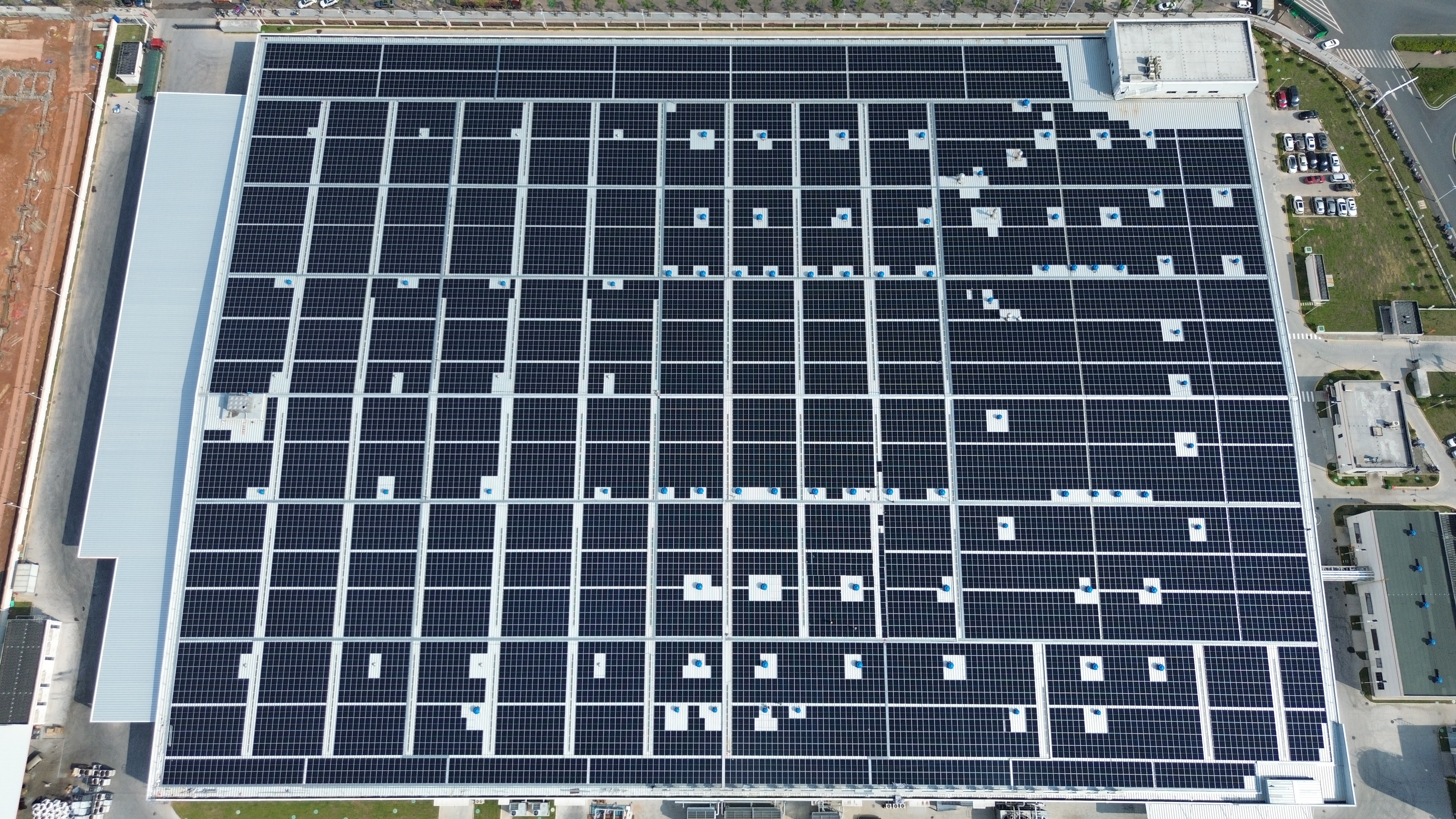 項目直流側總裝機容量1.358MWp,交流側裝機容量1.15MW。在降低企業(yè)用電成本的同時每年可節(jié)約標準煤約394.86噸,可減少CO?排放量約1082.04噸、SO?排放量0.109噸、氮氧化物排放量0.175噸。